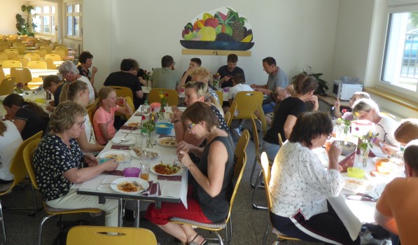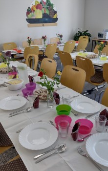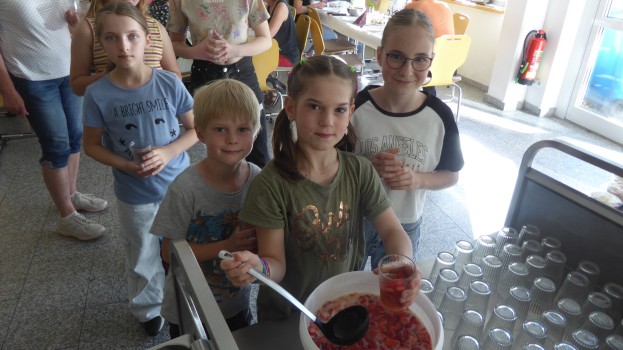 Schließlich galt es, erfrischende Getränke und eine abwechslungsreiche Speisenfolge zu kreieren. Die Palette der Köstlichkeiten reichte von Salat mit selbstgemachtem Dressing, verschiedenen Wraps, Flammkuchen, Spaghetti mit unterschiedlichen Soßen bis hin zu einer leckereren Joghurt-Frucht-Speise. Frau Hofmann war begeistert vom Zusammenspiel der Kinder mit ihren Angehörigen.