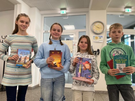 Am HGGT wird, wie in ca. 7000 anderen Schulen in Deutschland, alljährlich der beste Vorleser oder die beste Vorleserin gekürt. Aus unseren beiden 6. Klassen nahmen jeweils die beiden Klassensieger teil und als beste Vorleserin am HGGT wurde Eleni Scherret aus der Klasse 6a gekürt. Die Entscheidung war sehr knapp, auch die drei Platzierten Linnea, Emely und Jonathan glänzten mit tollen Beiträgen. Für den Ausscheid auf Kreisebene wünschen wir Eleni viel Erfolg!