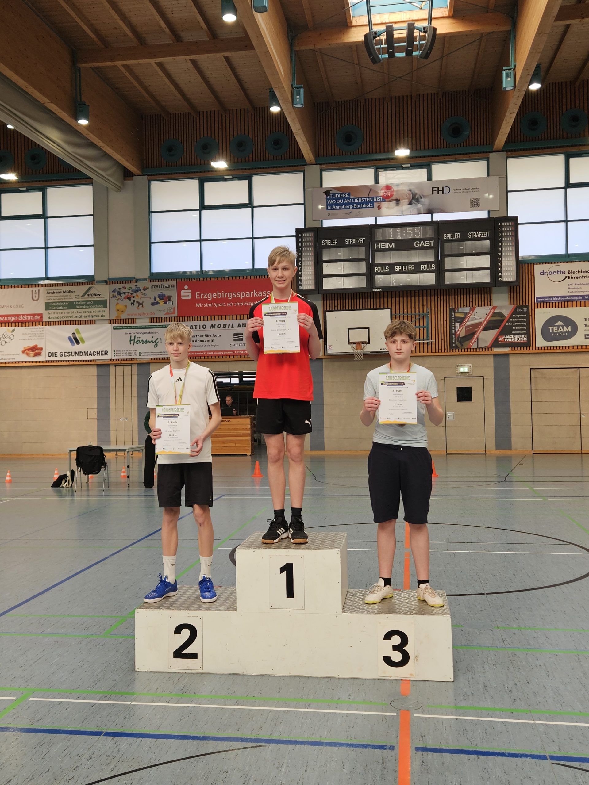 Am 19.03.2026 gingen 16 Schüler vom HGGT im Kampf um die Medaillen in der Silberlandhalle Annaberg an den Start. Hierbei galt es, sich in den Disziplinen Sprint, Dreierhopp, Medizinballschocken bzw. Kugelstoßen sowie Rundenlauf gegen die vielen Konkurrenten durchzusetzen.